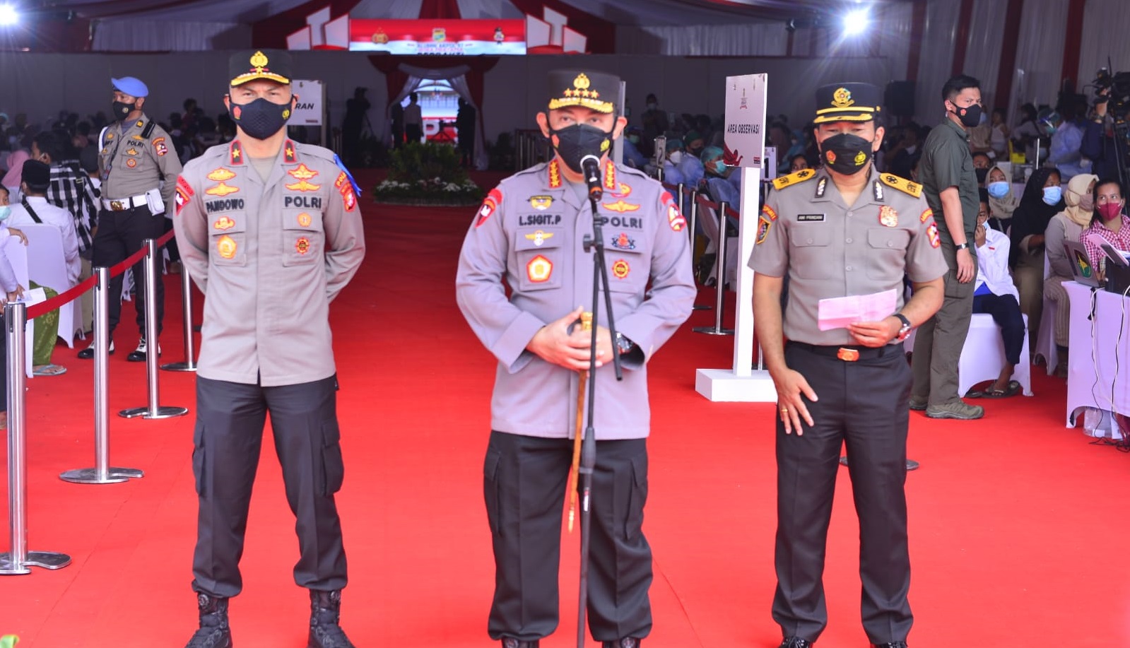 “Tentunya saya memberikan apresiasi kepada adik-adik saya angkatan 97 di seluruh wilayah yang telah ikut berpartisipasi dalam melaksanakan kegiatan vaksinasi dan bansos kepada masyarakat Indonesia yang saat ini memang sedang menghadapi situasi yang sulit,” kata Kapolri dalam sambutannya.