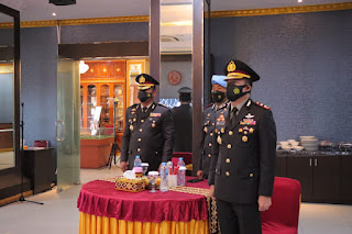 Lampung – Kepala Biro Operasi (Karo ops) Polda Lampung Kombes Pol Wahyu Bintono Haribawono bersama Pejabat Utama (PJU) Polda Lampung mengikuti upacara peringatan Hari Kesaktian Pancasila secara virtual di Siger Lounge Polda Lampung, Jumat (1/10) pagi.